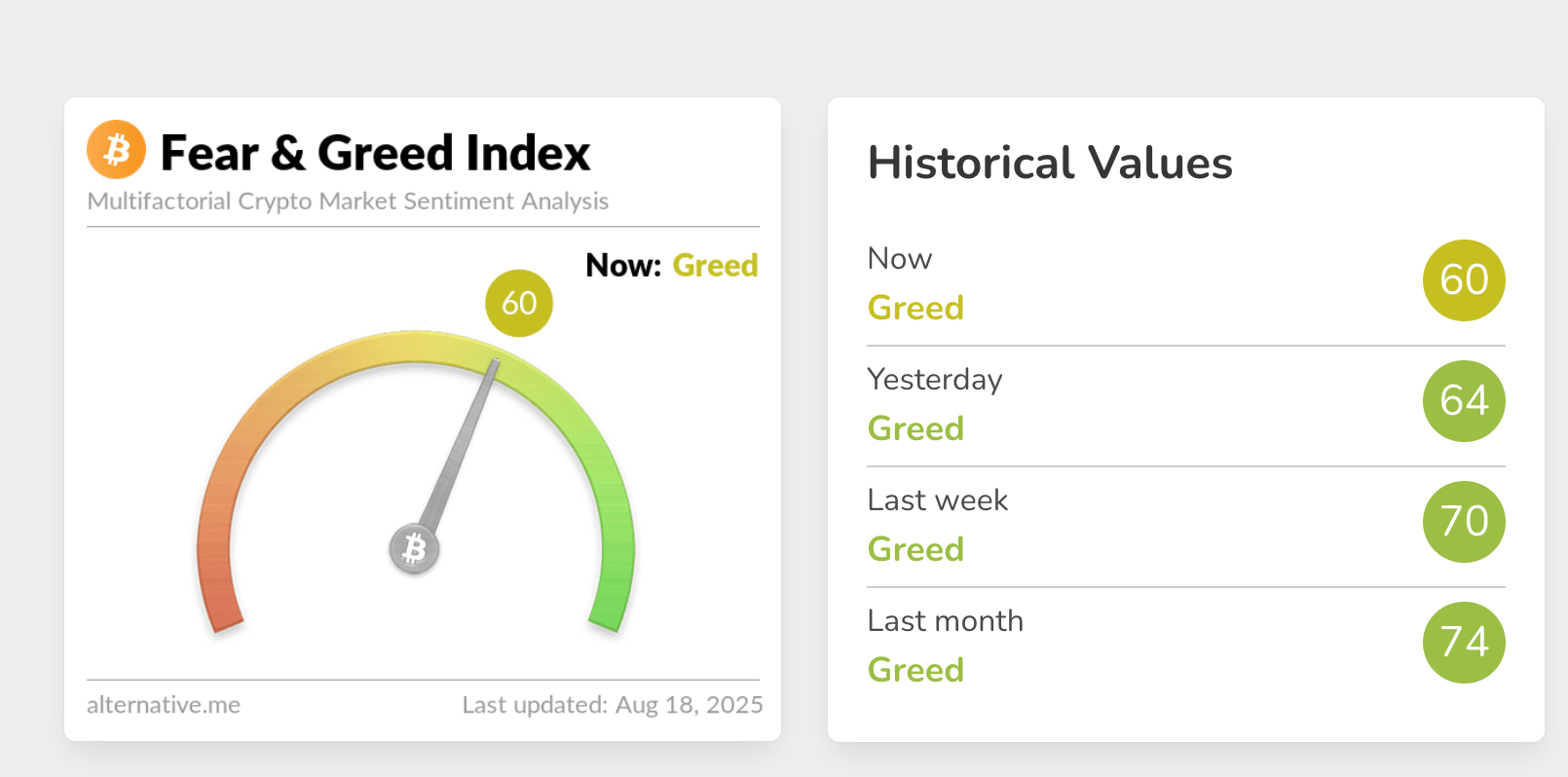 Quick take: The index measures market emotions from extreme fear to extreme greed.